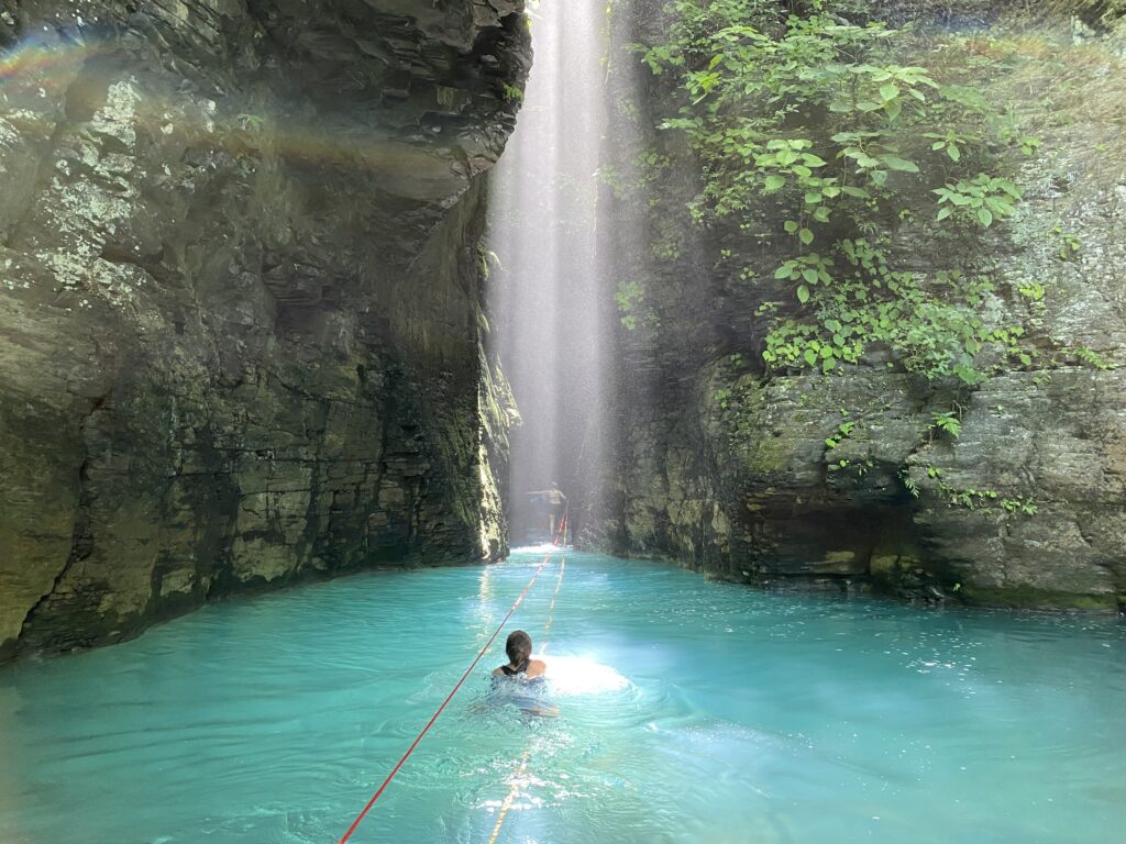 Enjoy an adventurous 3-hour hike, passing by 5 different river pools and passing through a stone canyon, caves, and small waterfalls until you reach La Leona Cave where you must swim across the river and climb a small ladder to enjoy the great views of the waterfall.